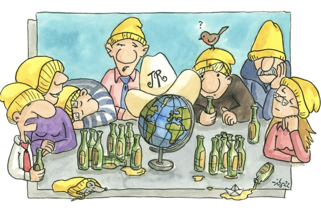 Meine Jahrzehnte lange friedliche Koexistenz mit der Yacht erfuhr jedenfalls eine Zäsur, Schubumkehr träfe es besser. Die Skandale und Tumulte im Trans-Ocean haben die blaue Welt in schwere See gebracht, immer mit dabei ein JR Cowboyhut, den wir sogar gezeichnet haben. Wie stets im Leben, ging es um merkwürdige Ungereimtheiten, der Kassenschrank ist ja überall verlockend! Ich habe begonnen, die Vorgänge zu dokumentieren und sortieren, immerhin war ich 25 Jahre Mitglied in jenem Verein, den Uwe Janssen /Yacht bereits im Jahre 2012 wie folgt beschrieb: