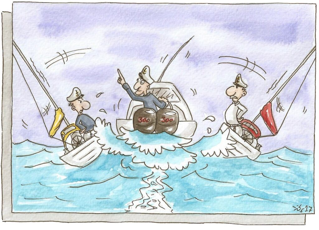 So ist mir nolens volens die Rolle des Protagonisten zugefallen. Obgleich ich keinesfalls an Langeweile leide, hat sich mitten in meiner weltweiten Wasserwelt ein unschönes Geschwür entwickelt, bei der mein gesunder Menschenverstand nicht mehr die Klappe halten konnte. Immerhin eine Marktnische, die dem ganzen Wasserbusiness Luft zum Atmen sicherstellt: Segeln heisst Träumen, womit sich Geld verdienen lässt, mich inklusive.