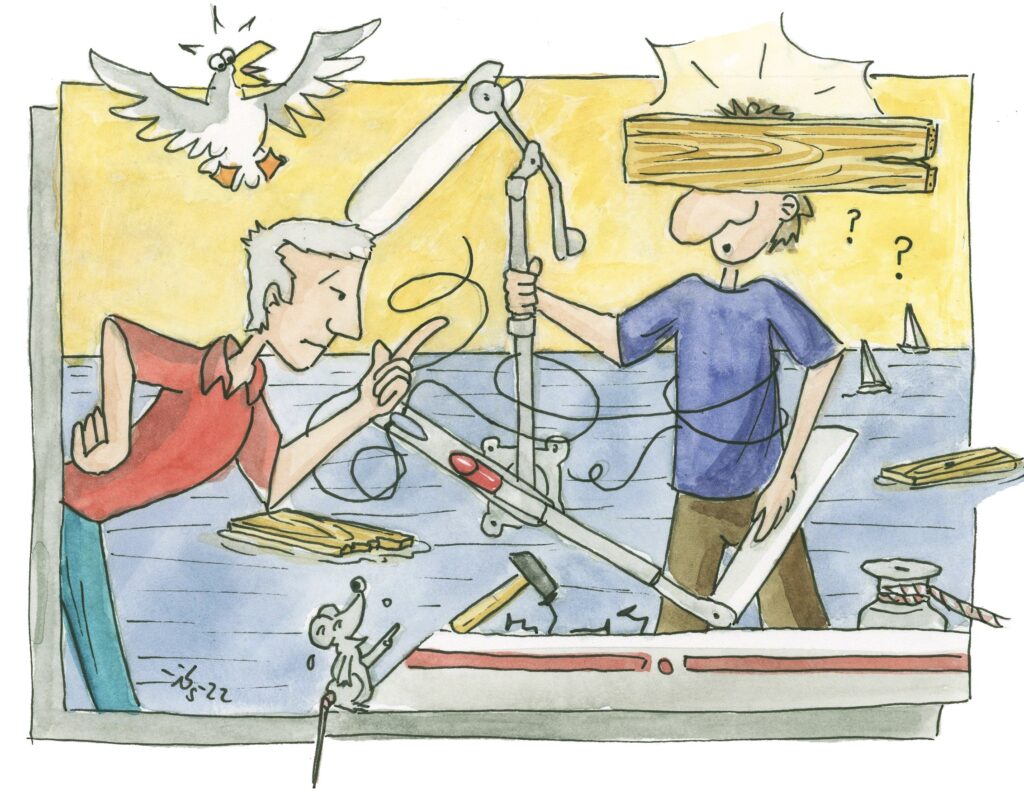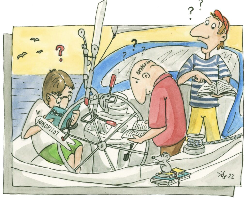 Umgesetzt mitten ins Wassermedium: es geht um Besserwisser, die anstelle der Lektüre des Manuals oder eines Fachbuches … ALLES BESSER WISSEN und darüber die Praxis vergessen … endlose Diskussionen führen, weil sie nicht an eine simple Mechanik glauben können / wollen.