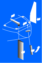 The enormous mechanical advantage generated by the servo system makes servo-pendulum vanegears powerful enough to steer a yacht of up to 60ft and 30 tonnes effectively. The pendulum arm and, in consequence, the transmission lines, generally only have about 25 cm or 10 in of travel. The critical factor determining the steering performance of a servo-pendulum system is the quality of the line transmission. The shorter the lines and the smaller the number of turning blocks used to link the windvane gear to the tiller or wheel, the larger the steering movements and the better the steering quality will be. Poor force transmission with slack, stretchy or stiff lines and too many turning blocks means most of the available travel will be wasted and the windvane gear will accordingly only be able to move the main rudder by a few degrees. |